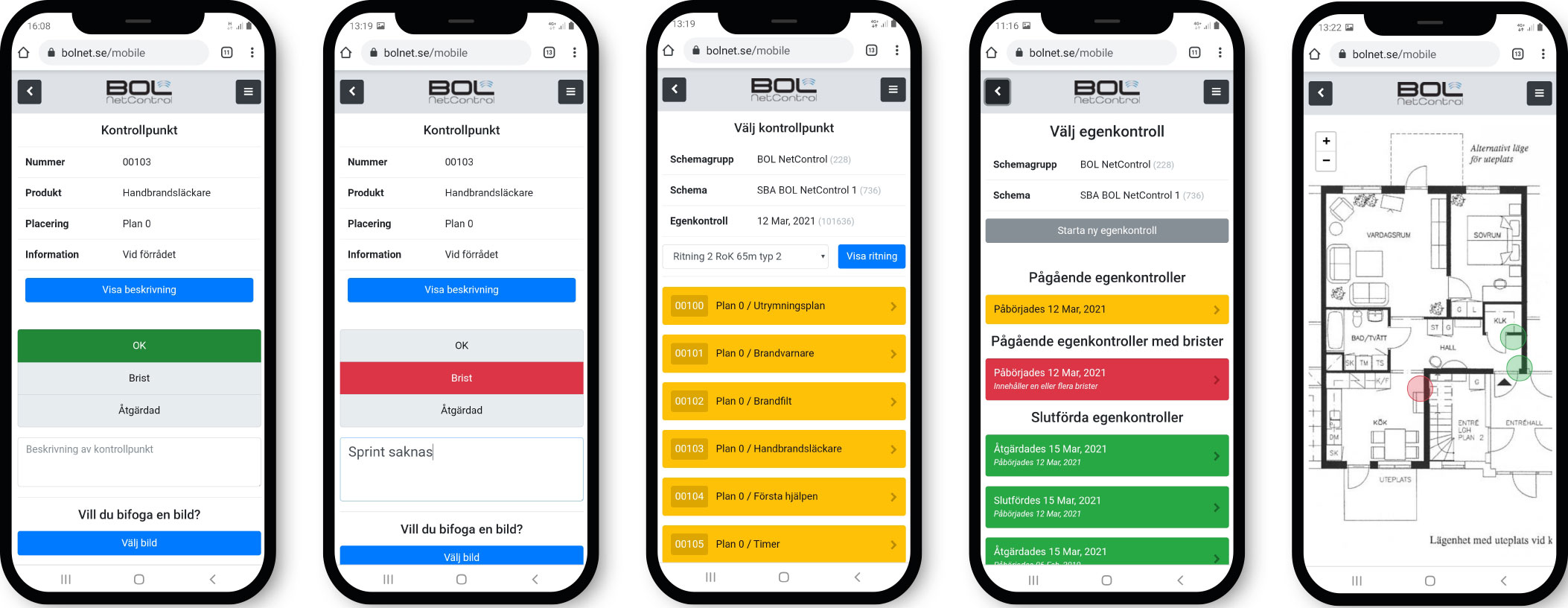 Du kan arbeta lika bra med BOLnetControl på din dator som på din surfplatta eller smartphone. Du ser tydlig information om dina kontrollpunkter, ritningar och annat. Ta en bild på en eventuell brist, ladda upp – och mejla iväg din arbetsorder direkt till ansvarig.