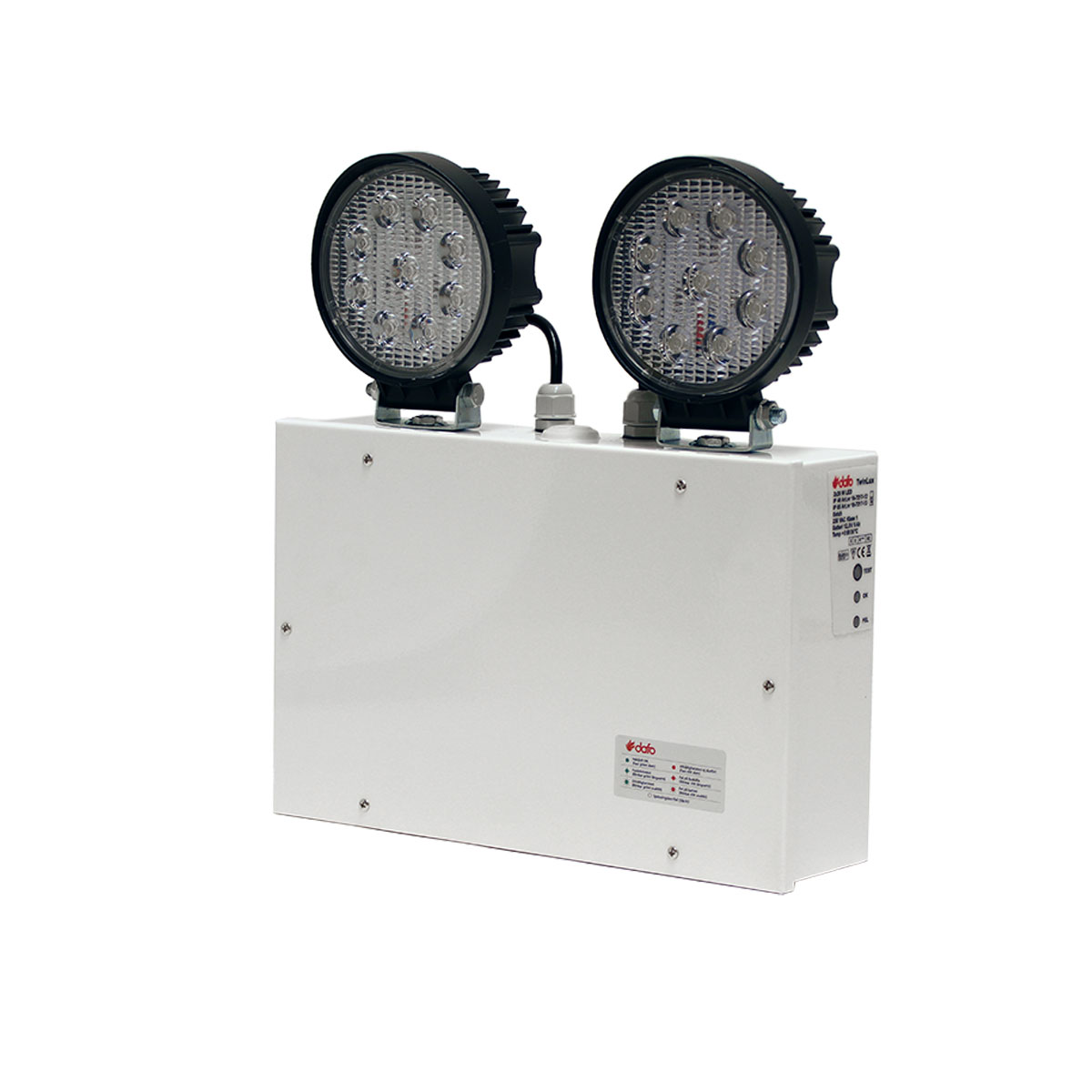 TwinLux strålkastaraggregat används som nödbelysning i stora lokaler med krav på långa belysningsavstånd.